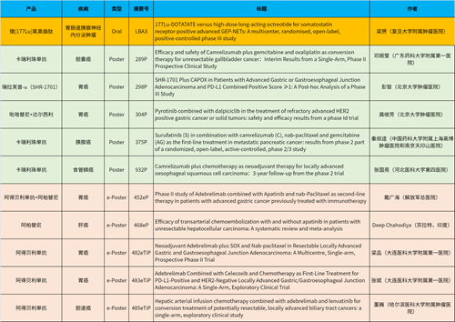 在消化系统肿瘤领域,Ag尊龙凯时产品相关研究共入选1项最新突破性摘要(LBA)、5项壁报和5项电子壁报,共11项研究。其中阿得贝利单抗入选4项研究、卡瑞利珠单抗入选3项研究。