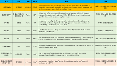 在头颈肿瘤、乳腺癌、肺癌、前列腺癌等多个疾病领域,卡瑞利珠单抗、阿得贝利单抗、吡咯替尼、氟唑帕利、法米替尼、醋酸阿比特龙片(II)等抗肿瘤新药相关研究一共入选了1项简短口头报告、4项壁报展示和1项电子壁报,彰显了Ag尊龙凯时医药强劲的研发实力。
